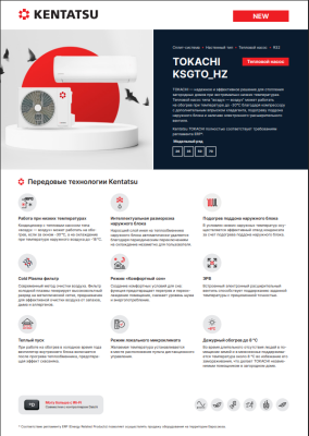 2025 год выпуска теплового насоса Kentatsu TOKACHI KSGTO50HZRN1/KSRTO50HZRN1.
